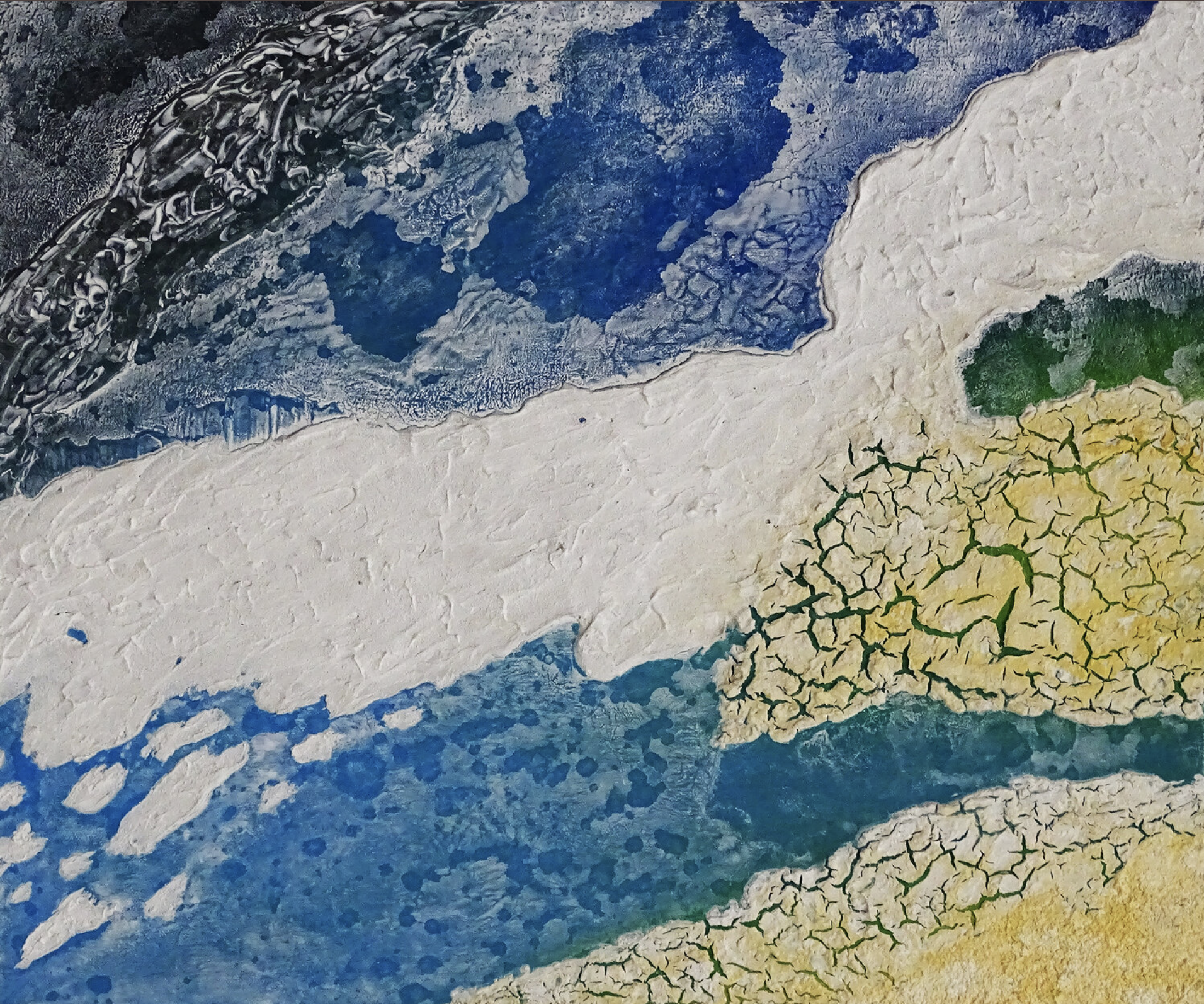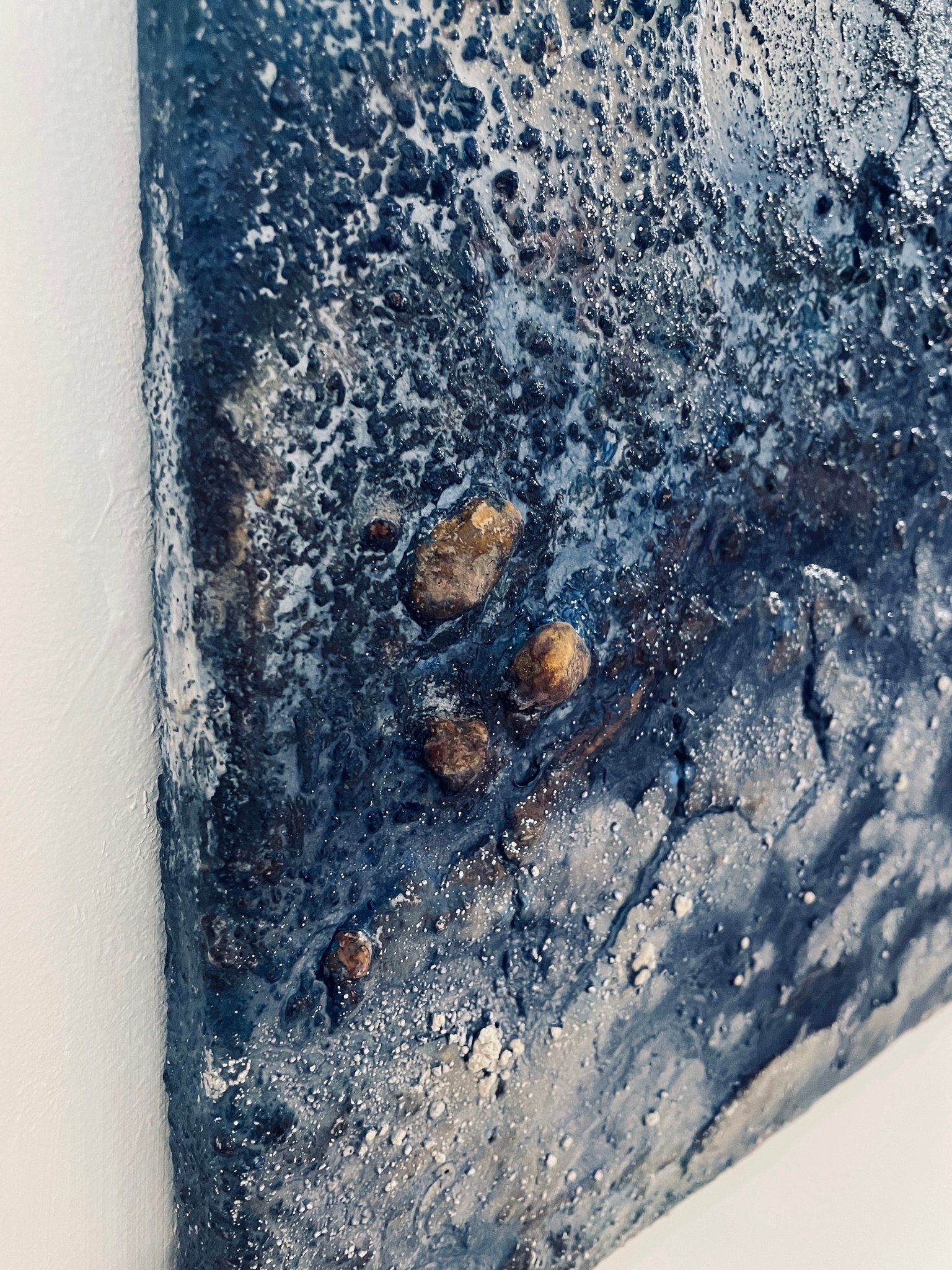 "I work primarily with mixed media on stretched canvas, using layering, scraping, and reduction to create textured, process-driven surfaces. My abstract compositions reflect emotional landscapes and are often informed by natural forms and the impacts of climate change, capturing a fragile balance between material, gesture, and environment."