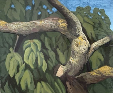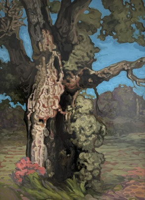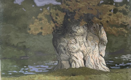 Through my paintings, I want to show their strength and their fragility, their silence and their depth. Sometimes with distortion, I try to capture the presence of these trees as if they were portraits of life itself.”