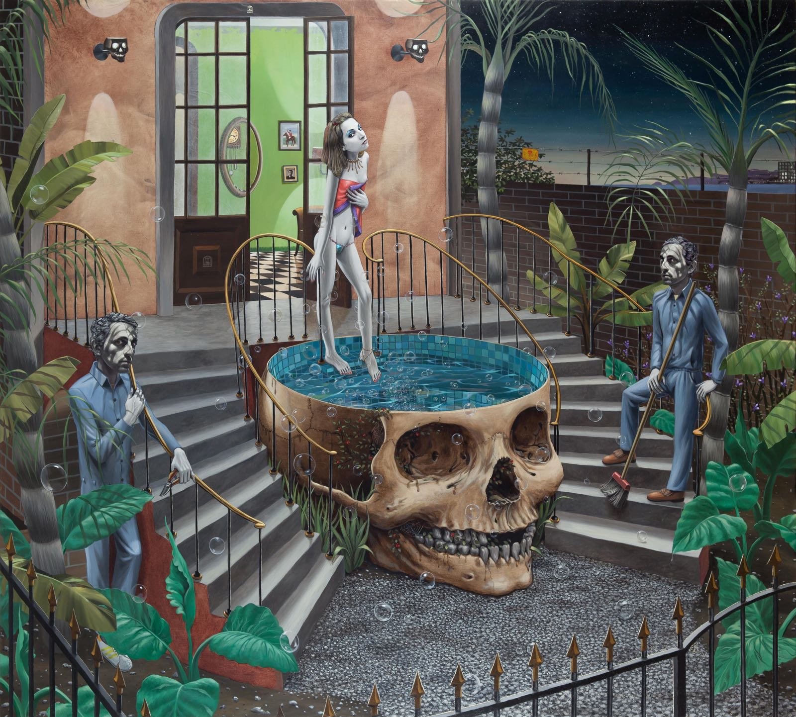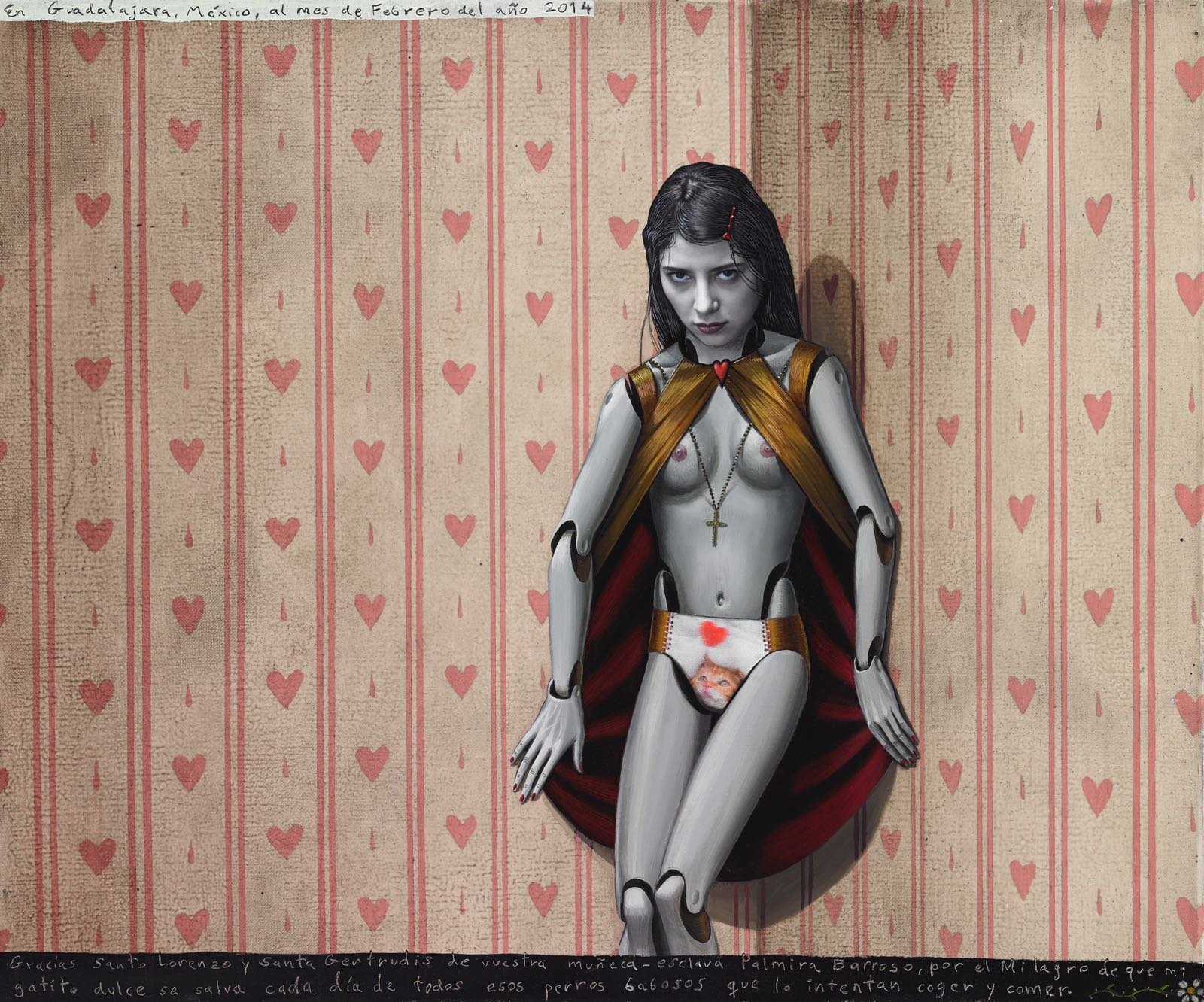 His practice blends acrylic painting with collage techniques, incorporating elements such as photographs, holograms, fabrics, human hair, and found objects to create canvases with multiple layers of meaning. Influenced by Post-Impressionists like Henri Rousseau and Pierre Bonnard, as well as Latin American Magical Realism and Surrealism masters like Frida Kahlo, Rubert transforms the ordinary into ambiguous narratives that resist linear interpretation.