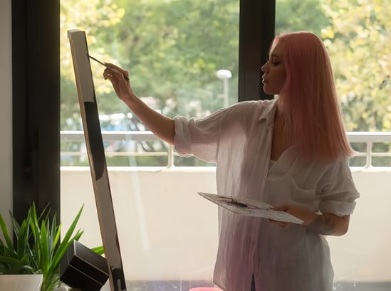 Lisa Stikina, born in 1998 in Russia, is a striking example of contemporary abstract painting, masterfully using mixed media on canvas. Her work is characterized by a vivid interplay of textures and colors, creating an immersive visual experience. ‘Fantasy’ encapsulates the essence of abstraction that draws viewers into a dreamlike realm.