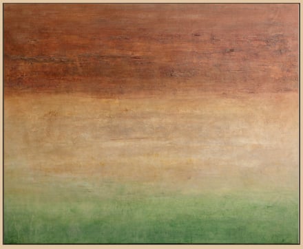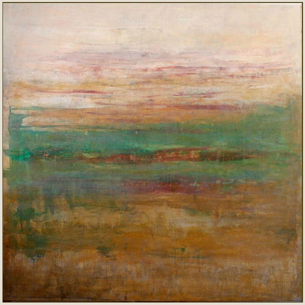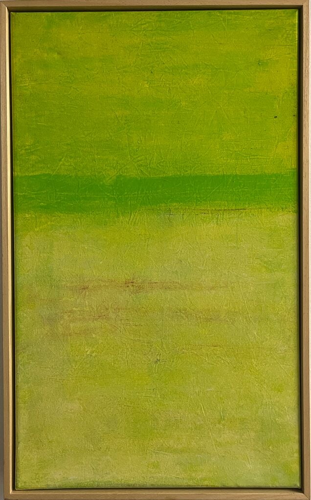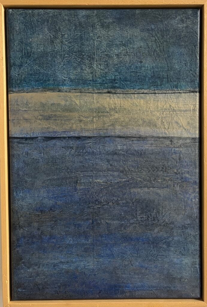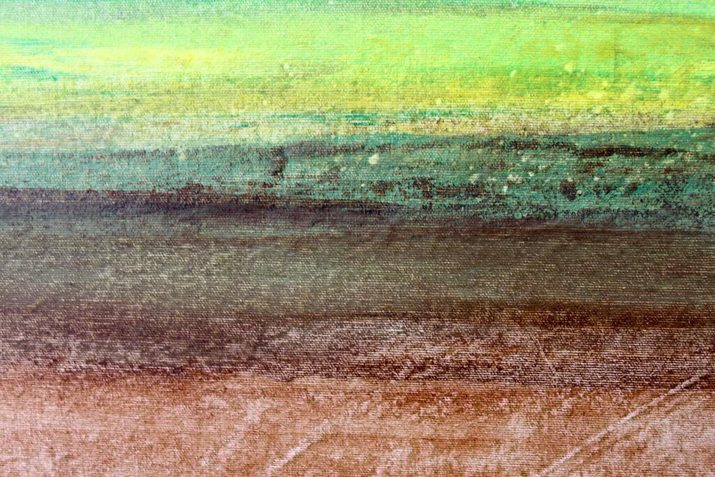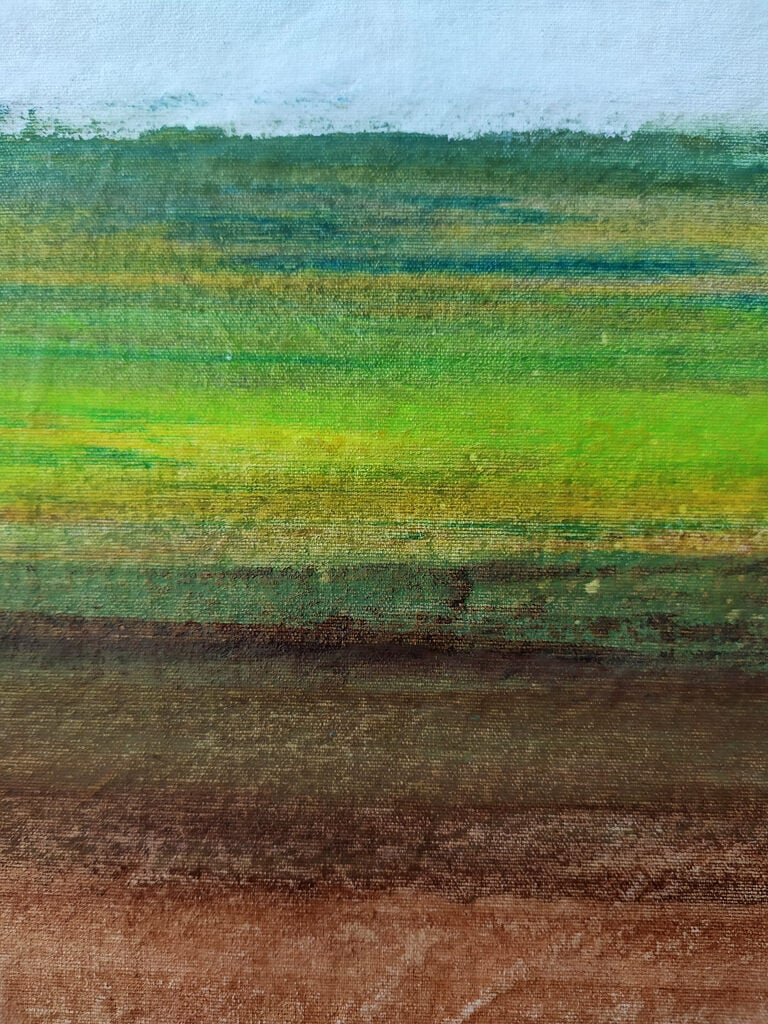 Mi pintura se mueve entre la abstracción y la figuración. Simplifico las formas, trabajo con capas, texturas y trazos que a veces sugieren horizontes y otras veces los desarman. Busco capturar no lo que se ve, sino lo que se siente. El color tiene para mí una carga simbólica; la pincelada deja huellas del tiempo; y la materialidad del pigmento funciona como un puente entre lo visible y lo invisible."
