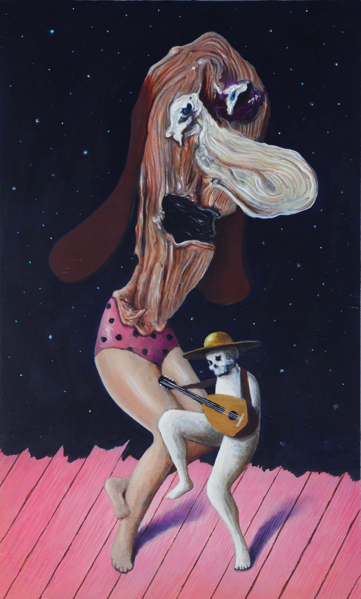 Paul Pretzer (b. 1981, Paide, Estonia) lives and works in Barcelona and Berlin. He studied at Hochschule für Bildende Künste in Dresden and Muthesius Kunsthochschule in Kiel. His oil paintings feature hybrid beings and chimeras, often reflecting themes from German children's literature, with a focus on the absurdities of life.