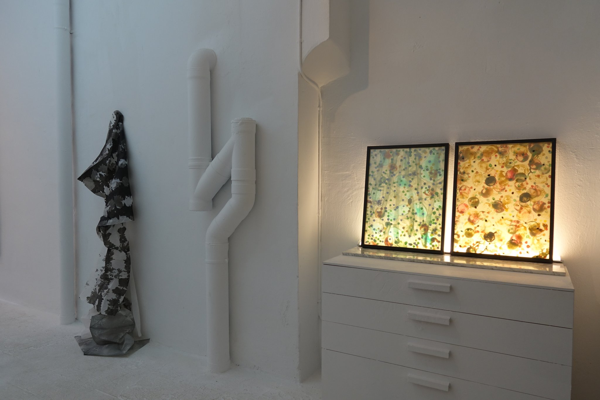 This exhibition aims to initiate a conversation about the concepts we take for concrete, such as the letters that make up this text, the materials of which this sheet is composed, or short-lived abstractions, such as a paint stain that is suddenly a figuration, or an abstract figure on a banking screen that for a moment meant one euro and suddenly means nothing.
